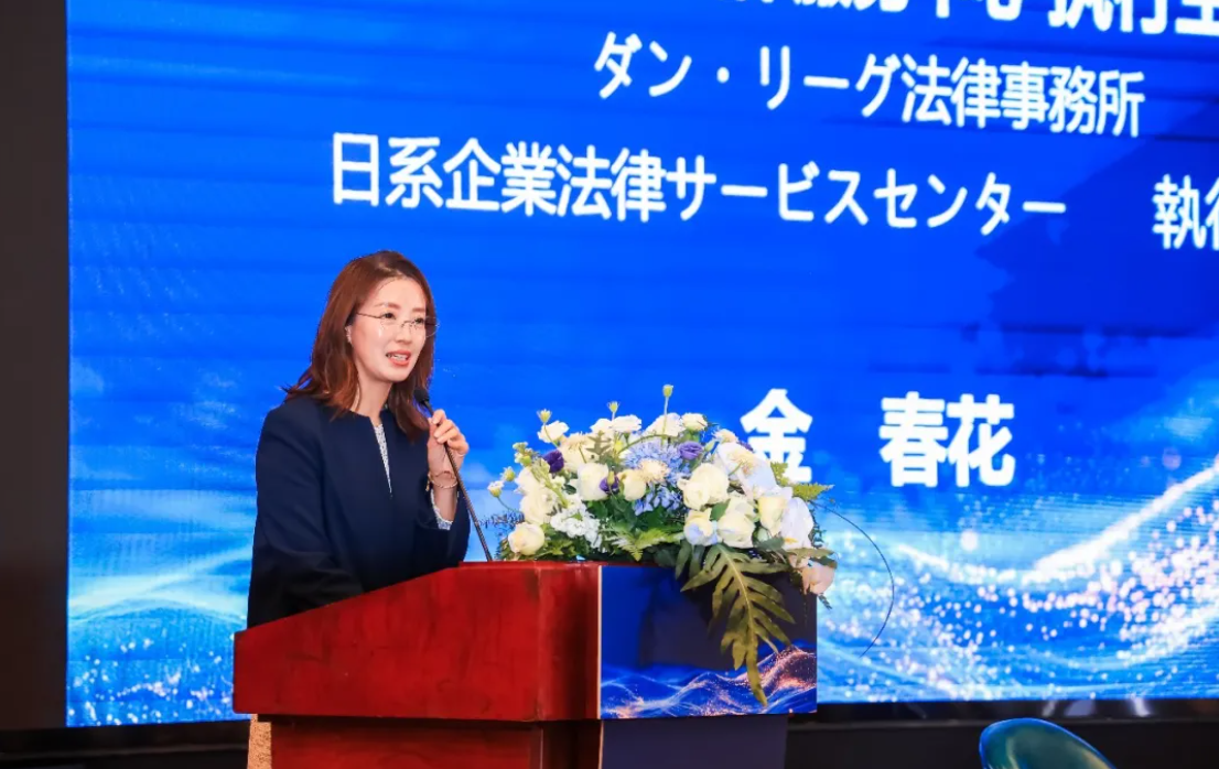 フォーラムの締めくくりとして、ダン・リーグ法律事務所日系企業法律サービスセンター執行主任の金春花氏が登壇し、ご参加者への感謝の意を表しました。金氏は、参加者各位の多大なるご支援のもと、今年の第3回フォーラムは高水準かつより専門的な知的融合の場となり、企業関係者と専門家の双方の視点から、マクロ的な展望や実務上の深い知見が共有されたと述べました。